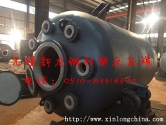 塑和钢复合在—起做成的储罐称呼为塑钢复合储罐,它是将钢网(龟甲) 焊接于钢体表面,以聚乙烯为原料,采用旋塑衬塑工艺(滚塑技术)一次整体成型于钢体内表面,由于钢网(龟甲)与聚乙烯为一体且钢网焊于钢体表面,使聚乙烯难以脱离钢体表面。因而是一种较为优异的耐腐蚀产品。产品内衬面平整、光滑、坚固,与传统的钢衬塑、钢衬玻璃钢相比,具有更良好的耐腐蚀、耐磨损、无接缝、不渗漏、不剥离、寿命长等优点。